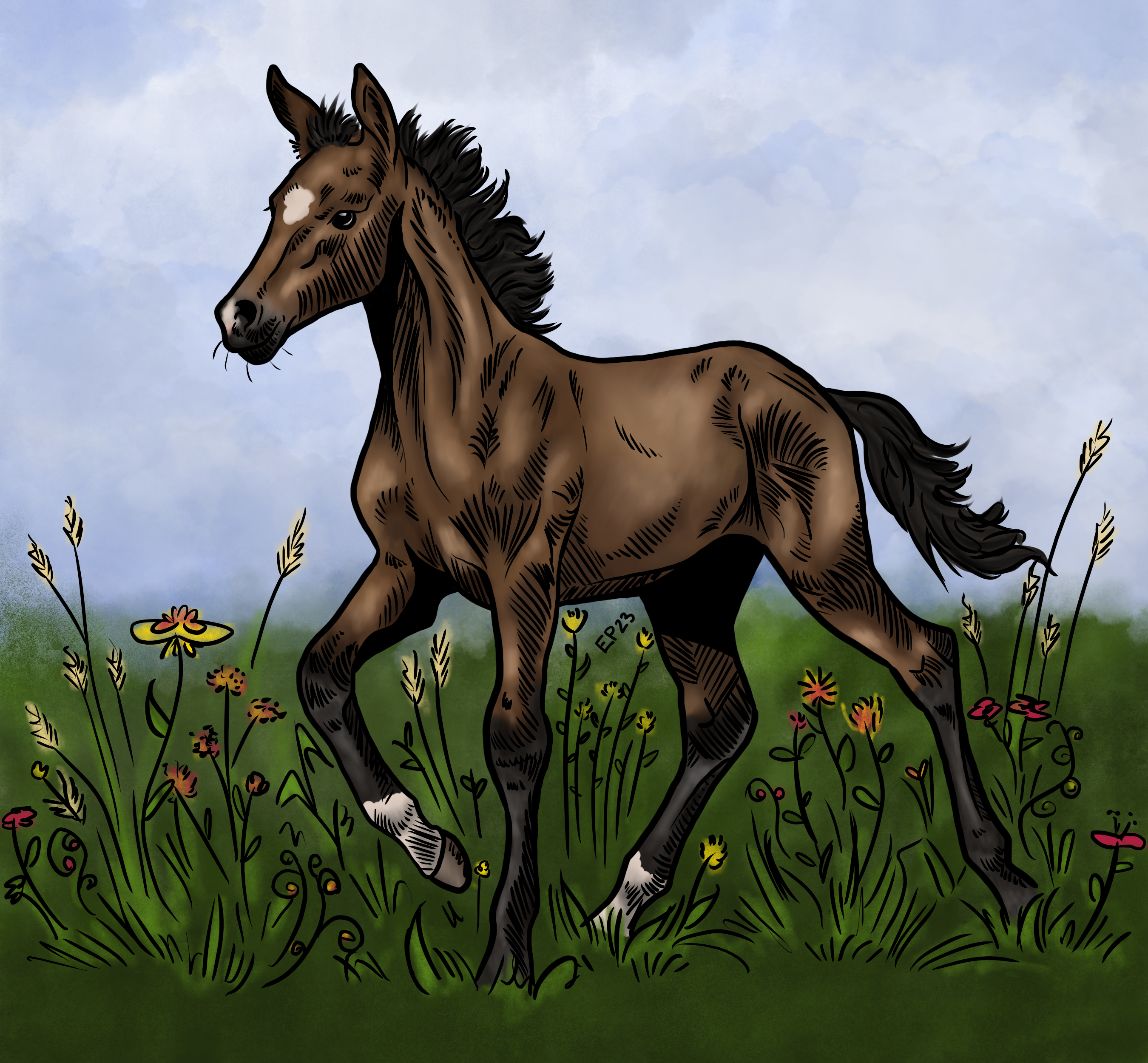 Siinä hetkessä Chloette tiesi heti astuttavansa nuoren silmäteränsä orilla, joka oli hänellä ylläpidossa, jota hän oli sen ensimmäisillä ratsuvuosinaan saanut viedä eteenpäin. Olisi harvinaista saada yhdistää kaksi itselleen tärkeää nuorta kouluhevosta, joten niistä syntyi myös tärkeä tammavarsa. Chloette oli ensikertalainen kasvattaja, joten paineet olivat suuret ja stressi. Hitsin vie niitä pitkiä päiviä joulun alla ja uutena vuotena, kun varsan piti syntyä. Onneksi Chloette sai tukea serkultaan, jolla oli paljon enemmän kokemusta jalostusasioista. Tete tykkäsi pantata varsaansa ylimääräisiä päiviä, mutta viimein sillä samaisella hetkellä, kun kukaan ei ollut katsonut, heiveröinen tammavarsa oli jo noussut ja kiinnittynyt sukuperinteinen mukaisesti emänsä kylkeen. Loppujen lopuksi ainoa vaikea asia oli nimen päättäminen, josta selvittiin lopulta tikkaa heittämällä, ja pienestä ruskeasta tammasta tuli Emeraude, tutummin Emmy.
