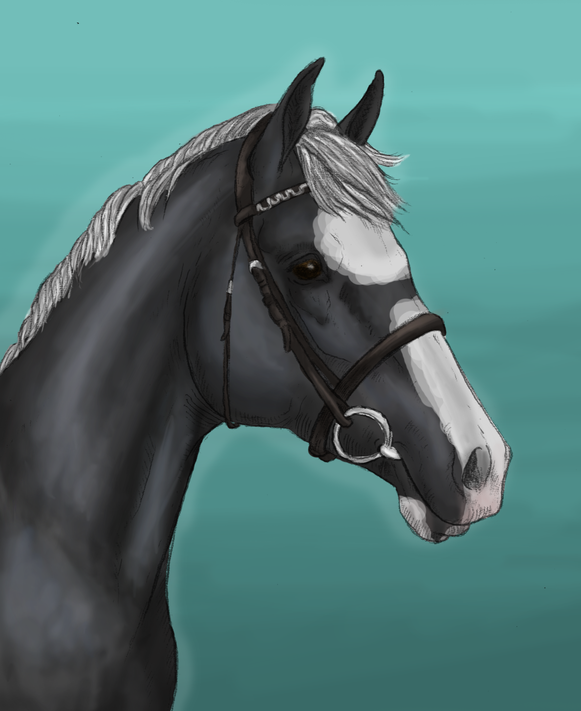 Hopeiset jouhet luovat näyttävän kontrastin mustaa karvaa vasten kun Seventh Inkytinky esiintyy. Eikä pelkästään erottuva väri, vaan kaiken kaikkiaan ori on mieleenpainuvan upea! Sen liikkeessä kuvastuu valtava voima yhdistettynä eleganttiin tasapainoon ja luontainen karisma ainoastaan korostaa Inkyn osaamista oltiimpa sitten esteradalla, maastossa tai kouluaitojen keskiössä. Kuva ei kuitenkaan paljasta sitä hien ja hampaiden kiristelyn määrää joka ratsastajalta vaaditaan viemään kaikki tarpeelliset, hienovaraiset avut läpi oriin kovaan kalloon. Inky osaa, mutta yhteistyö sen kanssa on usein haastavaa.